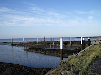 Ich musste schon schmunzeln, wenn die Autorin ihrer Protagonistin sinngemäß Worte in den Mund legt wie "Manchmal wünschte man sich, dass es noch Querverbindungen zwischen den wenigen Straßen zwischen den Warften geben würde." - Worte, die ich im August 2012 auch das ein oder andere Mal gedacht habe. Dann gibt es wieder die Szenen, die für jemanden, der noch nie auf Hallig Hooge war fast schon kitschig anmuten: Beschrieben wird der abendliche Spaziergang um die Kirchwarft, über eine Brücke und der anschließende Blick auf das auf Stelzen stehende Seglerhaus, hinter dem der Sonnenuntergang zu sehen ist. Ein gewisse Romantik lässt sich nicht leugnen, aber mein erster Gedanke beim Lesen war "Die Brücke kenne ich!" Auch den auf diesen Zeilen erwähnten Kutter, gibt es wirklich.